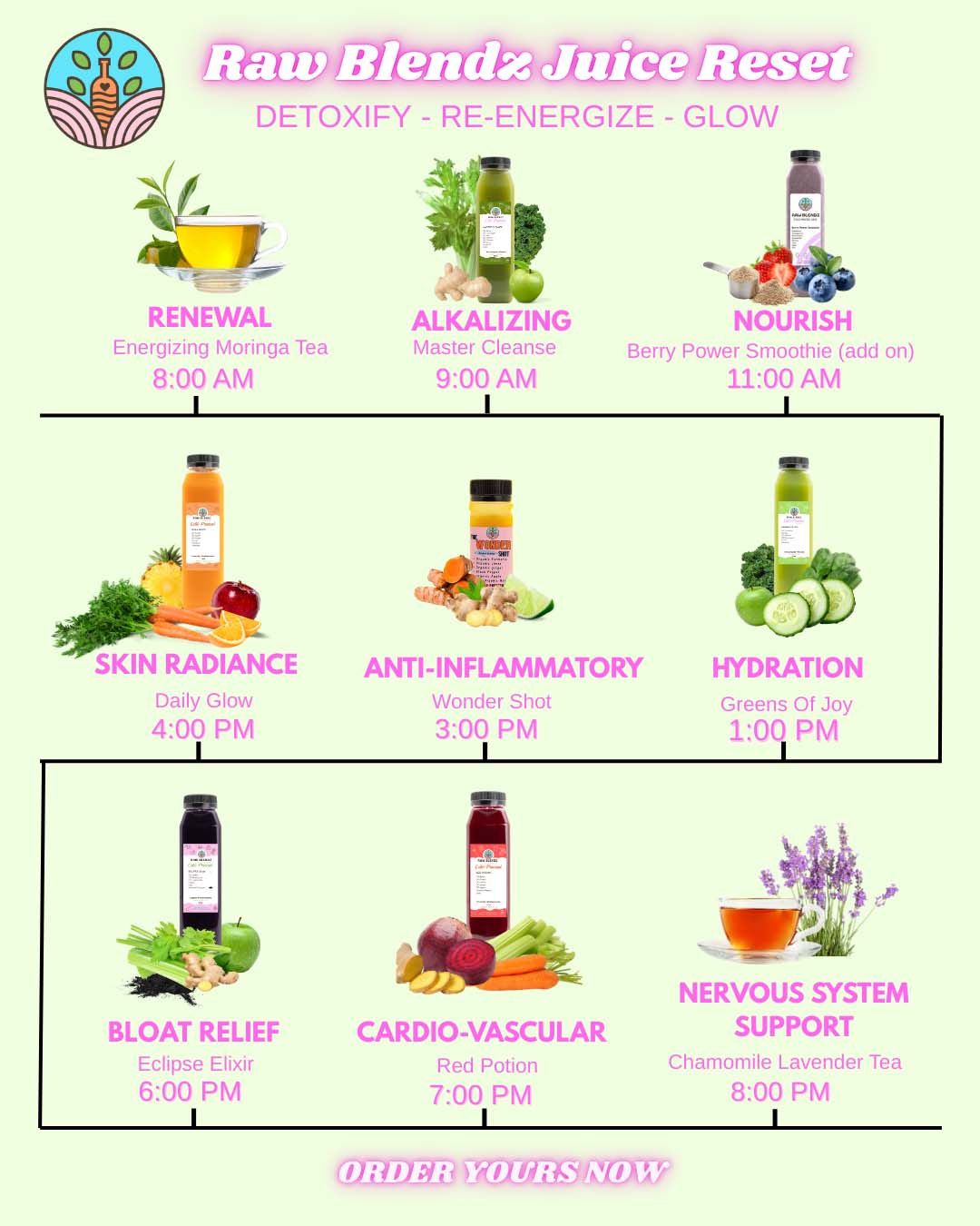 Every Raw Blendz juice is crafted with organic ingredients and unapologetic purpose. We’re talking real benefits:Energy, Immunity, Gut Health, Glow, and Grit. Each bottle delivers bold wellness with zero fluff.